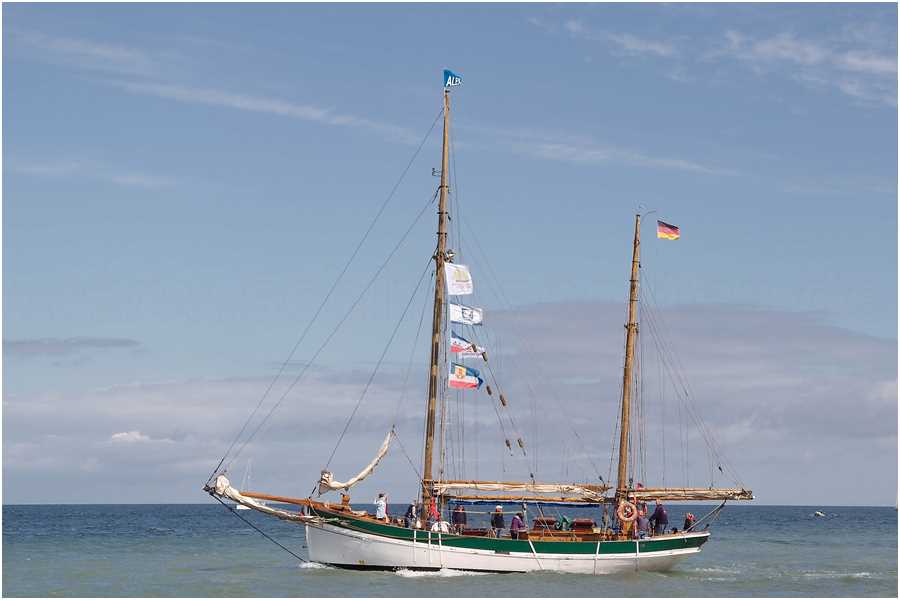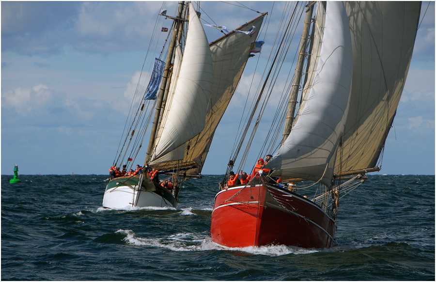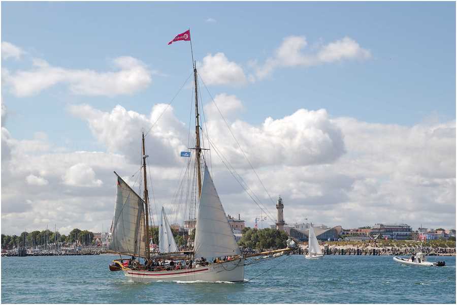 Rund 5 Windstärken pusteten in die Segel der zehn kleinen, wendigen Holzschiffe und sorgten für echtes Regatta-Feeling. Schon kurz nach dem Start vermeldete Regatta-Leiter Manfred Lehnert vom Begleitschiff "Elbe 1": "Ich bin optimistisch, dass wir segelnd nach Warnemünde kommen." So kam es dann auch und die Stimmung bei den rund 100 Mitseglern sowie den Crews war fantastisch. Auch Polarforscher Arved Fuchs hat mit seinem berühmten Haikutter "Dagmar Aaen" zum zweiten Mal an der Regatta teilgenommen: "Es war ein tolles Erlebnis für uns! Das Wetter war genau so, wie die Schiffe es brauchen: Wir hatten ordentlich Wind und die Sonne strahlte vom Himmel!"
