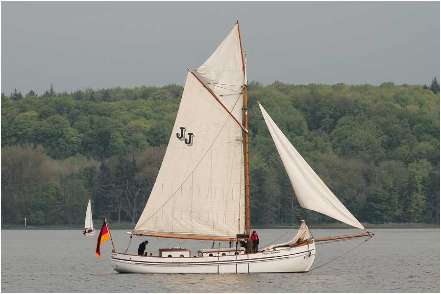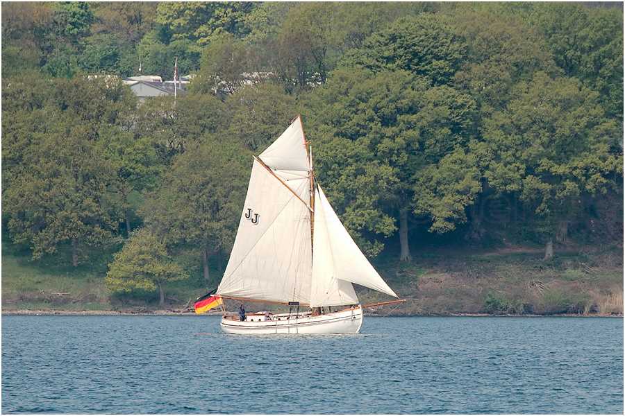 Die Segel ebenfals traditionell gefertigt in Marstall auf der Insel Aerö, bei Ebbe’s Bådebyggeri og Sejlloft. Alles Handgenäht aus Clipper-Canvas. Genäht in schmalen Bahnen. Alle Nähte dreifach mit braunem Faden, alle Kauschen und Lieken ausschließlich mit der Hand vernäht.