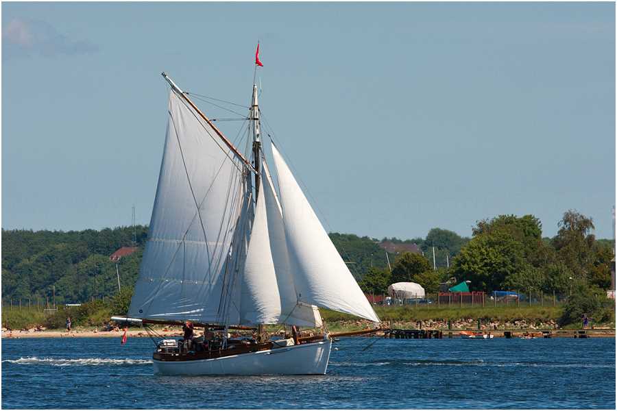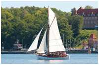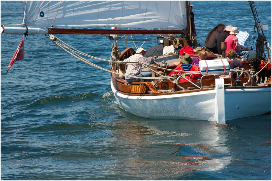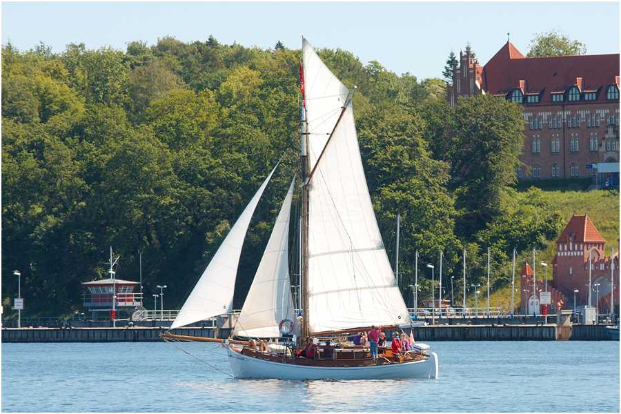 • segelt heute an und ab Museumshafen Flensburg oder Rudkøbing; das übliche Segelrevier ist die Ostsee zwischen Bornholm und Oslo