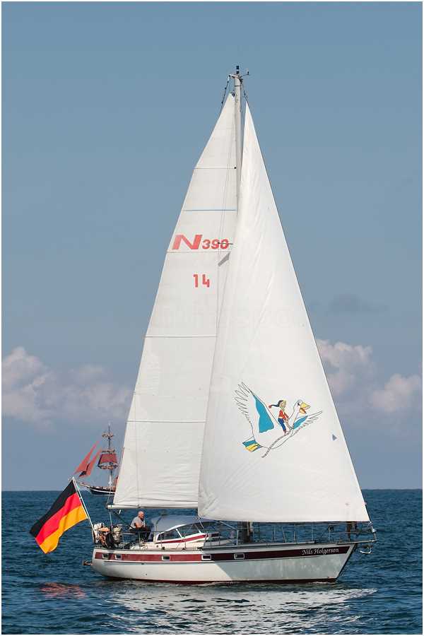 | Segelfläche: | 74,97 m², Großsegel: 34 m², Kreuzfock: 32 m², Genua: 56 m², Genua II: 46 m², Spinnaker: 120 m² |