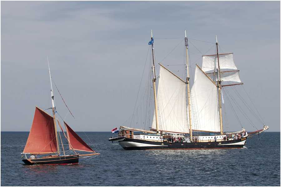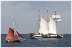 - mit verändertem Fahrgebiet von Atlantik in die Ostsee wurde das Gaffelrigg (Klüver, Fock, Groß- und Toppsegel) mit der Stenge (Mastaufsatz) erweitert, dadurch kann zusätzlich ein Flieger als fünftes Segel gefahren werden, die Segelfläche erweitert sich damit auf 41 m²