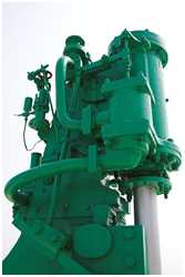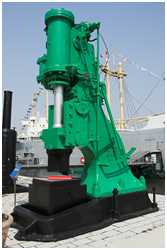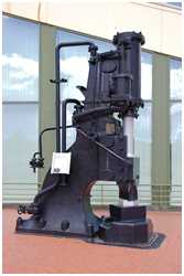 Dieser mittelgroße Dampfhammer stammt von der ehemaligen Bremer Vulkan-Werft in Vegesack. Von 1905 bis 1987 wurde er dort zum Schmieden von Schiffskurbelwellen und Zylinderkopfmuttern verwendet