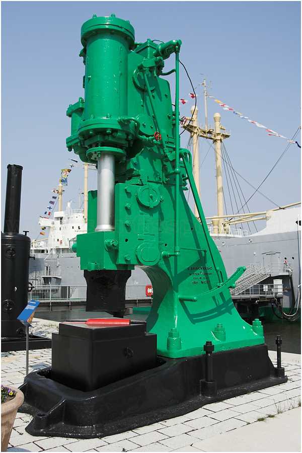 Dank der Unterstützung der Bremer Vulcan AG konnte der Dampfhammer 1992 im Freigelände des Deutschen Schiffahrtsmusem aufgestellt werden.